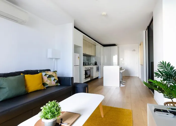 2Br Cbd Pad, City Views, Free Parking, Pool, Gym ferielejlighed ligger i Melbourne centrum - CBD kvarter, cirka 10 minutters gang fra Melbournes centrum og har en terrasse med udsigt over bjerget. Indkvarteringen er og byder på et udstyret køkken med alle nødvendige redskaber til at tilberede måltider.